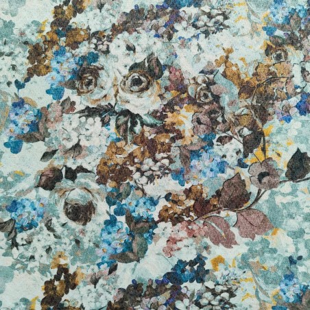 Lana Pura Double Face Fiorato Celeste Marrone Ocra Bianco