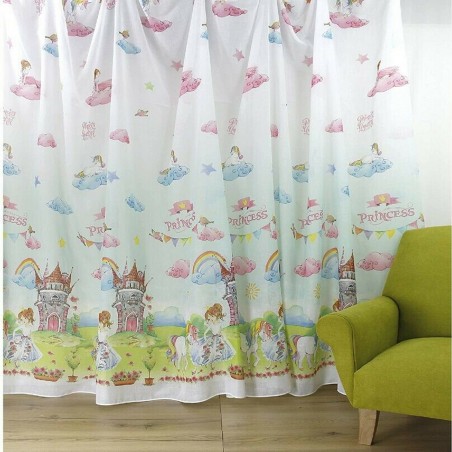 Tendaggio Effetto Lino Bianco con Fantasia Principesse e Unicorni